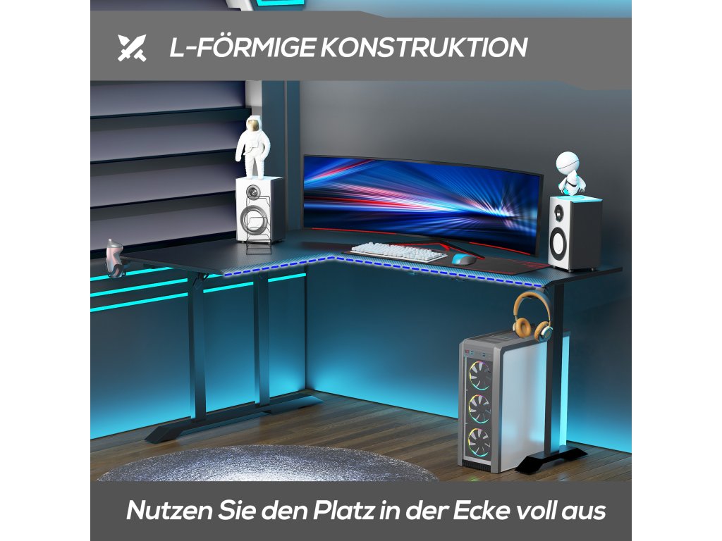 - PROSTORNÝ PRACOVNÍ PROSTOR: Rohový herní stůl ve tvaru písmene L s pracovní plochou o rozměrech 168 Š x 109 H cm nabízí dostatek místa pro herní monitory a klávesnici a pod pracovní stůl s počítačem si můžete pohodlně umístit nohy. Zaoblené rohy a hrany zajišťují větší bezpečnost.