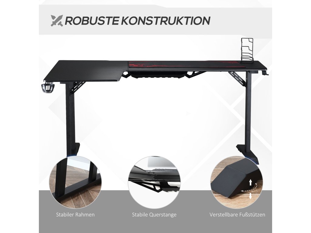 Výkonné hraní potřebuje výkonný herní stůl. Náš počítačový stůl HOMCOM nabízí velký úložný prostor pro vaše elektronická zařízení nebo jiné věci, které potřebujete ke hře. Tento závodní stůl umocňuje atmosféru závodů. Nabízí také řešení pro vaše kabely, sluchátka a nápoje. S tímto domácím stolem můžete plynule přecházet z pracovní stanice na herní sezení.