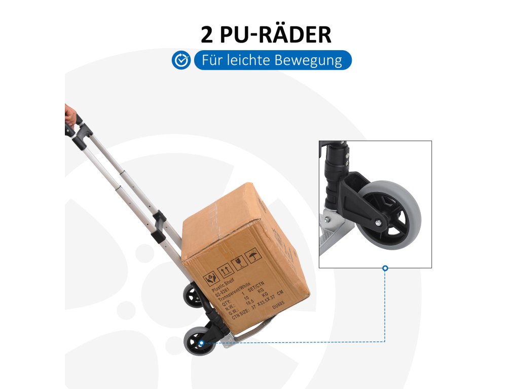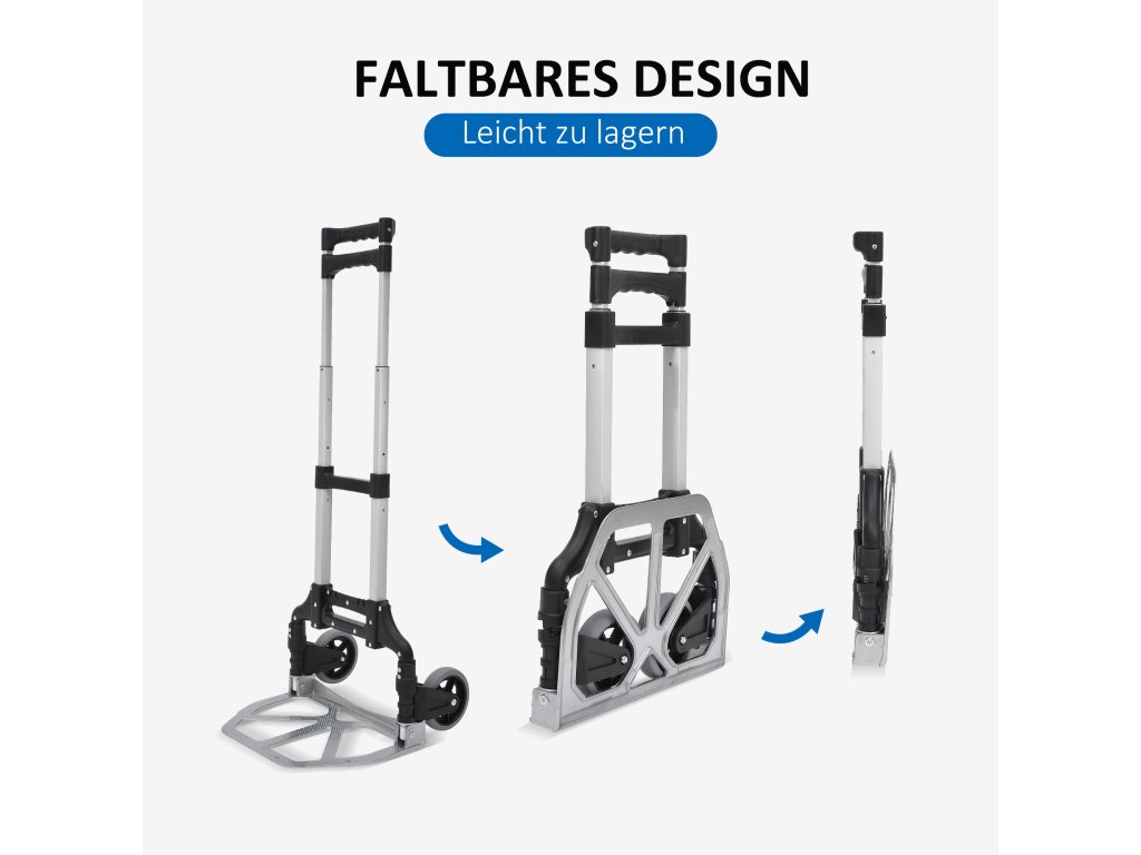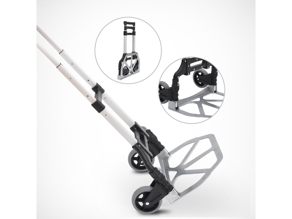 - Praktické vlastnosti: Díky lehké hliníkové konstrukci a 2 kompaktním kolům je vozík ideální pro přepravu zavazadel, balíků, přepravek s nápoji a dalších objemných předmětů.
