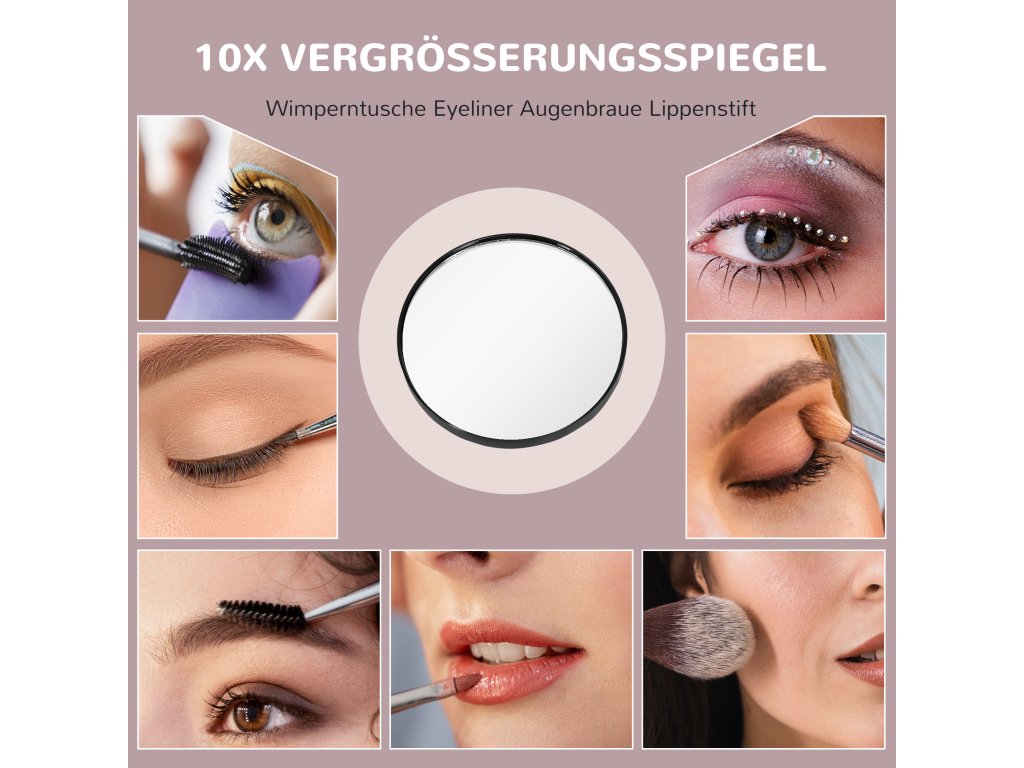 - Vylepšené detaily pro precizní líčení: Malé 10násobné zvětšovací zrcátko, které lze připojit k hollywoodskému zrcadlu, umožňuje precizní práci s detaily, jako je vytrhávání obočí nebo nanášení očních linek, a je také přenosné pro rychlé úpravy na cestách