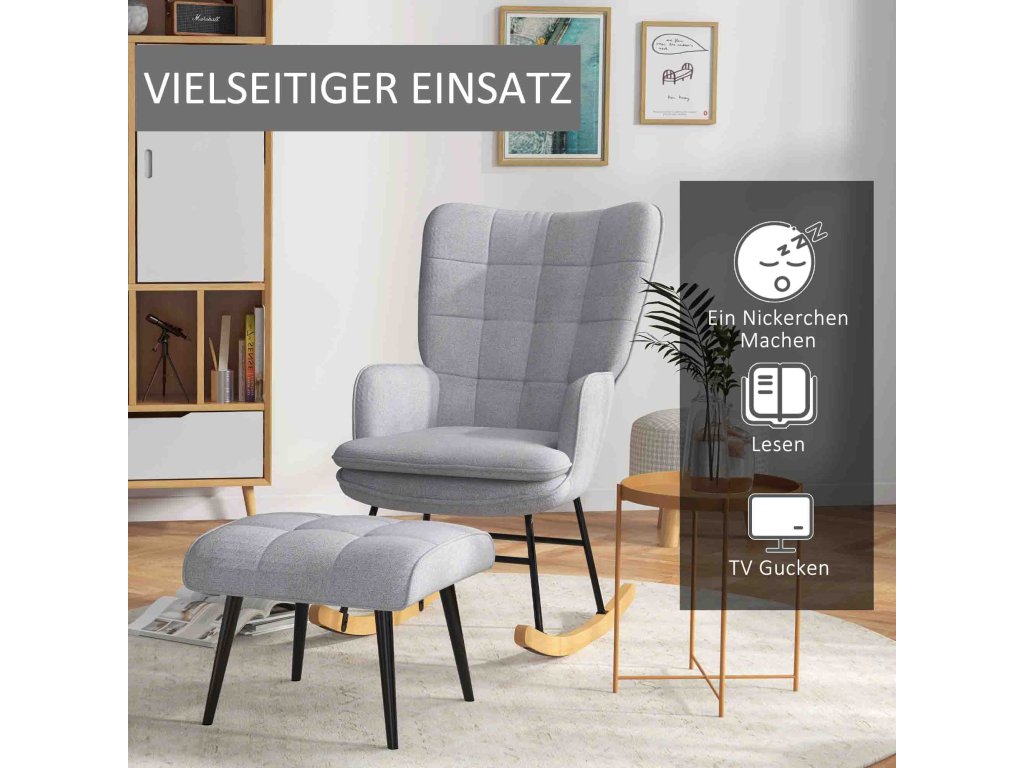 HOMCOM houpací křeslo, houpací křeslo s taburetem, křeslo, lehátko se vzhledem lnu, houpací křeslo do nosnosti 130 kg, světle šedé | Aosom