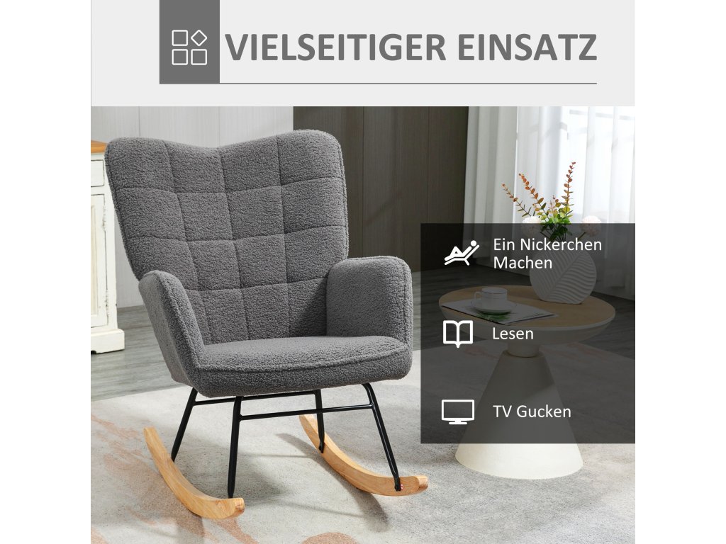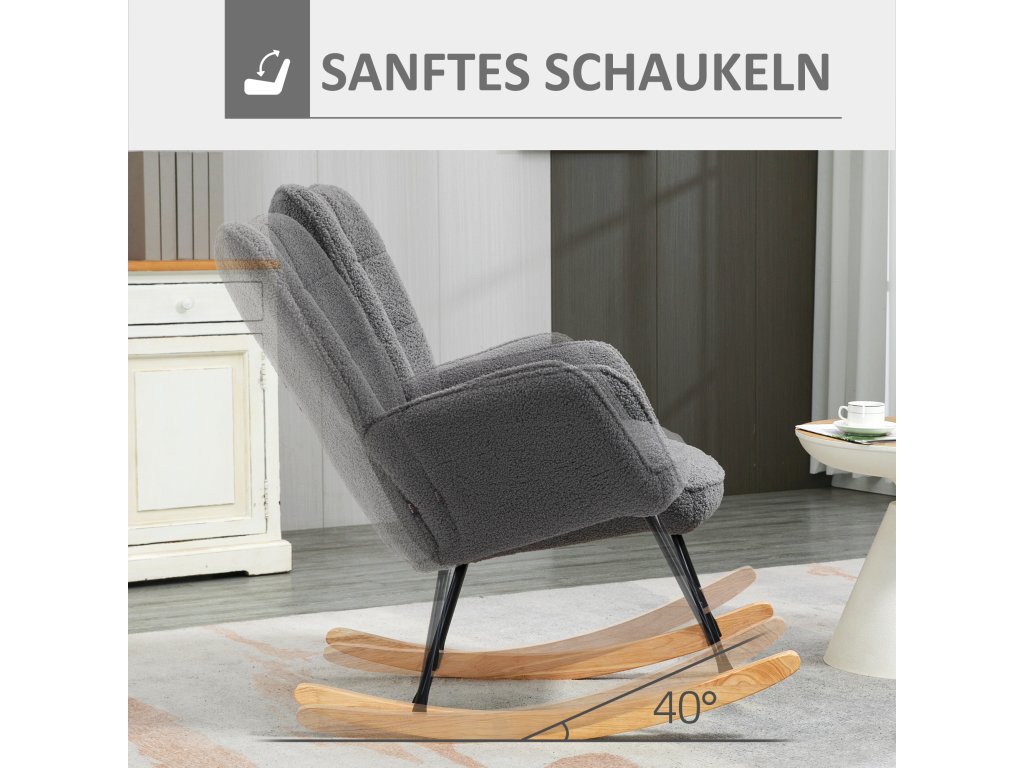 HOMCOM Houpací křeslo Houpací křeslo, akcentní křeslo, relaxační křeslo s berberským rounem, do 120 kg, tmavě šedé, 71x92x101 cm| Aosom