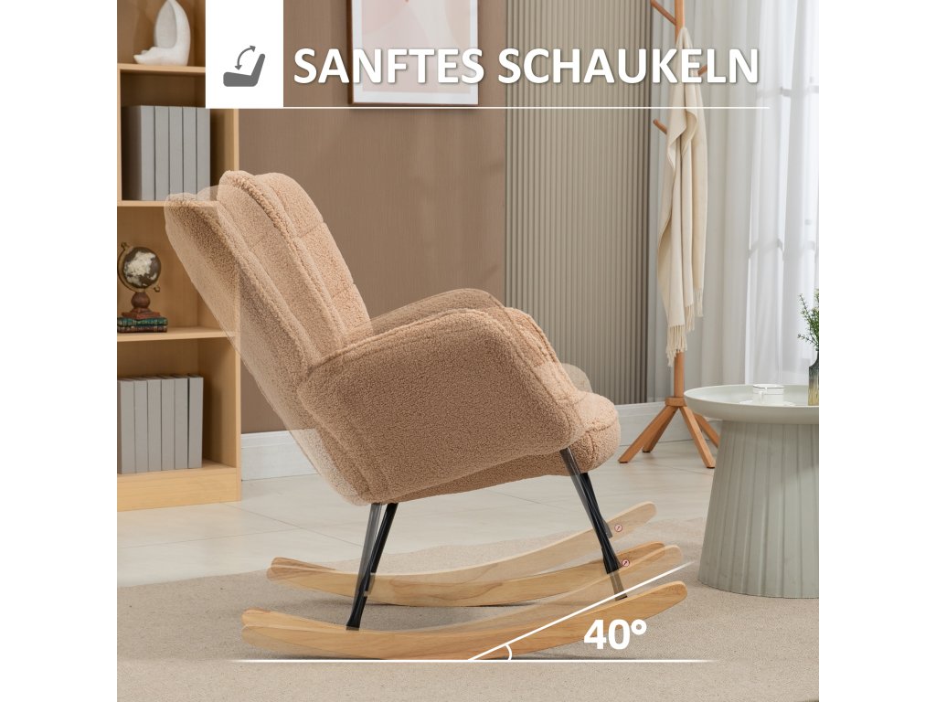 HOMCOM houpací křeslo houpací křeslo, akcentové křeslo, relaxační křeslo v imitaci jehněčí kůže, do 120 kg, hnědé| Aosom