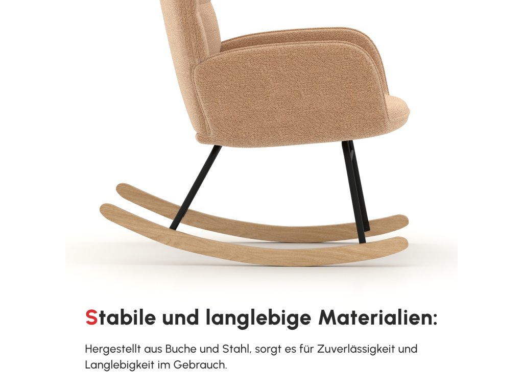 - ✔ Materiál: berber fleece (100% polyester), bukové dřevo, ocel, pěna