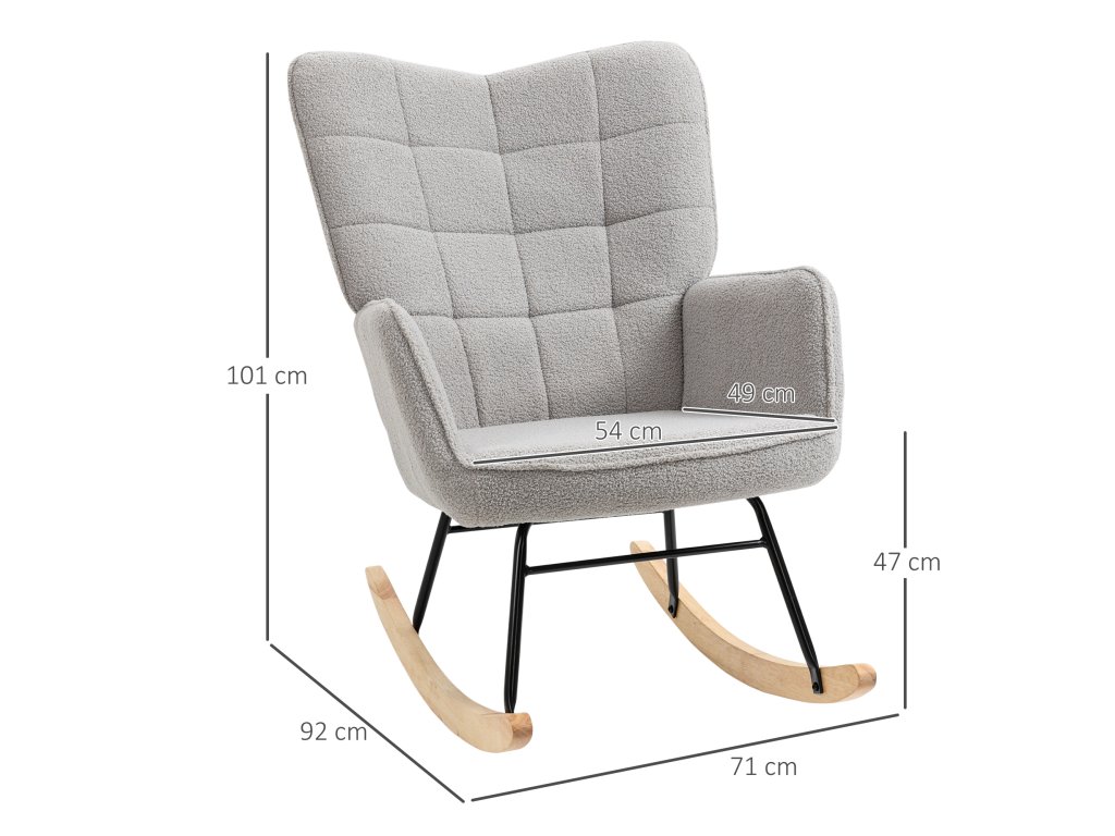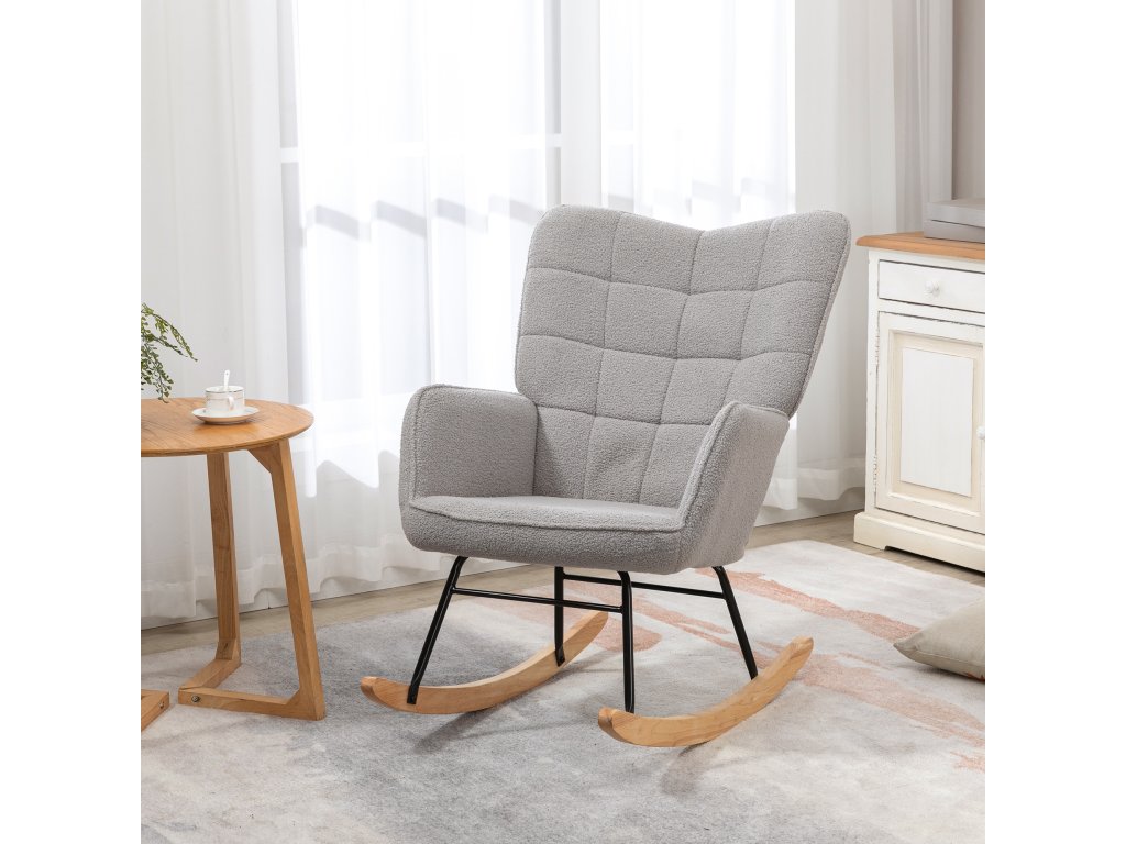 HOMCOM Houpací křeslo Houpací křeslo Akcentní křeslo Křeslo do obývacího pokoje Relaxační křeslo, nosnost do 120 kg, berberské rouno, světle šedá 71 x 92 x 101 cm | Aosom