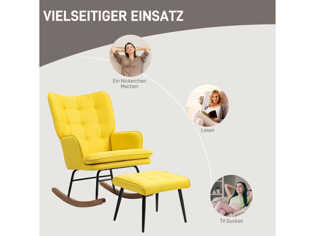 - Čas na odpočinek: Vychutnejte si jemný houpavý pohyb houpacího křesla a nechte stres všedního dne za sebou. Ideální na zdřímnutí nebo k pohupování vašeho dítěte, aby usnulo. Odpovídající podnožka poskytuje další pohodlí pro vaše nohy.