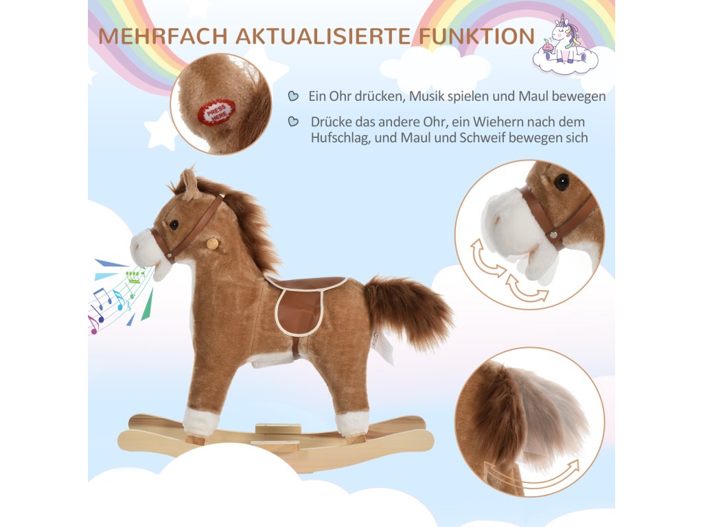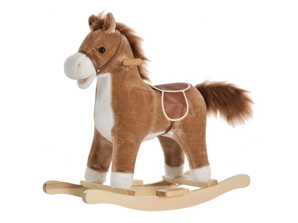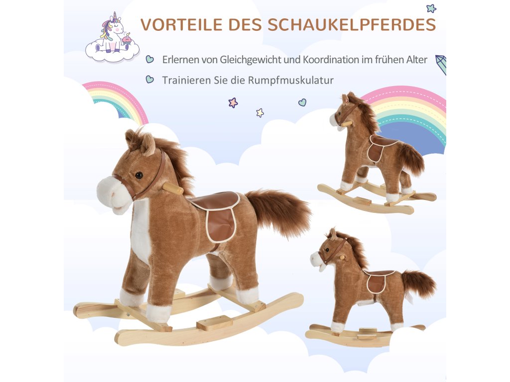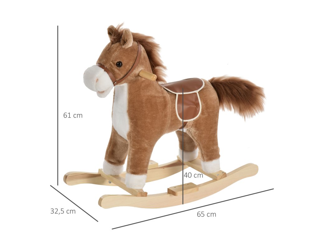 HOMCOM hračka houpací kůň Houpací zvířátko se zvuky zvířat a rukojetí pro děti 36-72 měsíců, plyšová hnědá 65x32,5x61 cm | Aosom.de