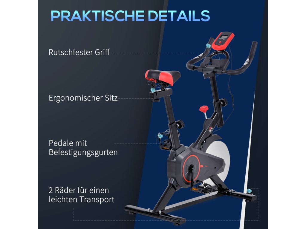 - Robustní materiál: Cvičební kolo se skládá z práškově lakovaného ocelového rámu vybaveného setrvačníkem o hmotnosti 13,2 kg, který zajišťuje vysokou stabilitu.
