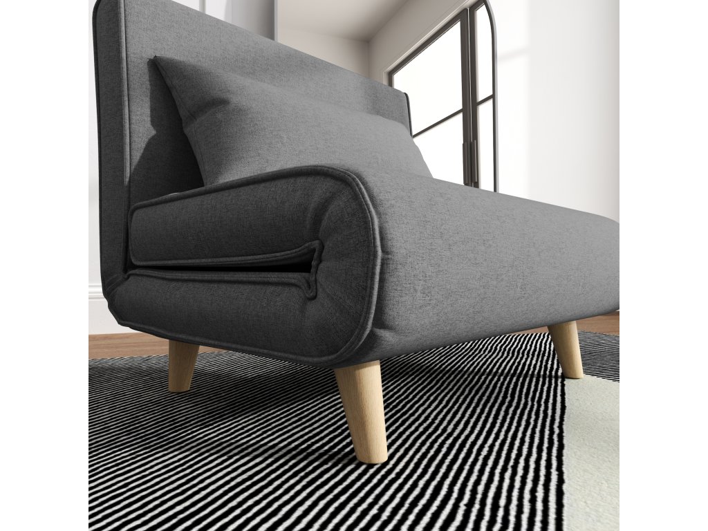- konstrukce 2 v 1: Tuto univerzální rozkládací pohovku lze rychle přeměnit na polohovatelné křeslo nebo jednolůžko pro improvizované přespání. Elegantní skandinávský styl se dobře kombinuje s různými interiéry
