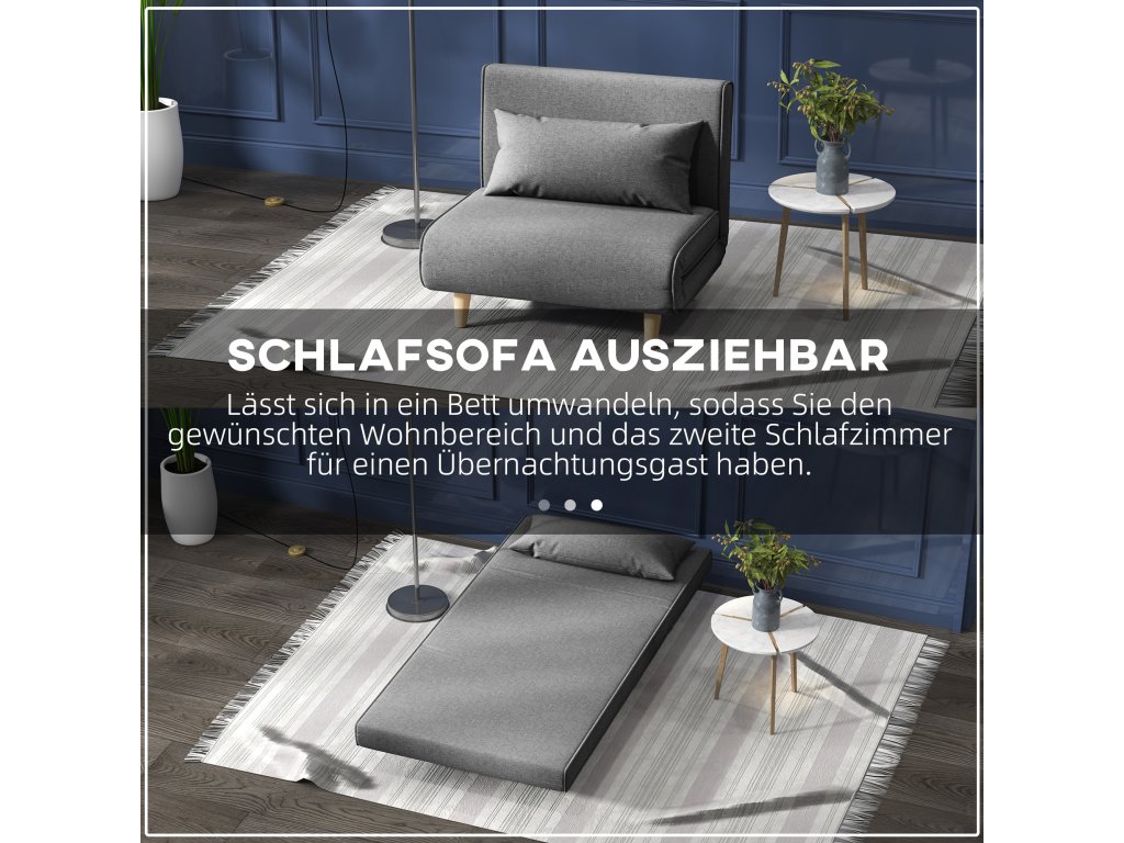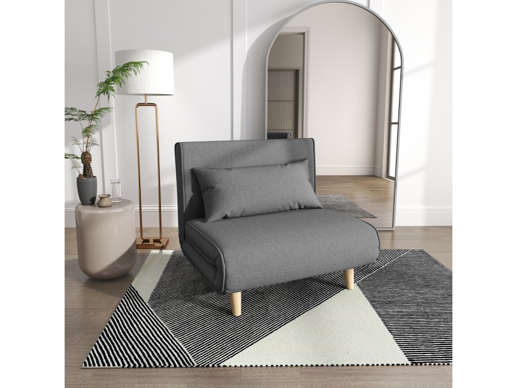 HOMCOM Jednolůžková rozkládací pohovka malá, rozkládací s polohovatelným opěradlem, skandinávská, šedá, 95x95x80cm| Aosom