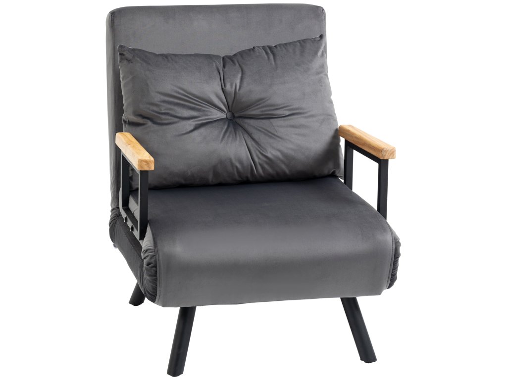 HOMCOM Jednolůžková rozkládací pohovka s funkcí lůžka, polohovatelné opěradlo, sametový vzhled, tmavě šedá| Aosom