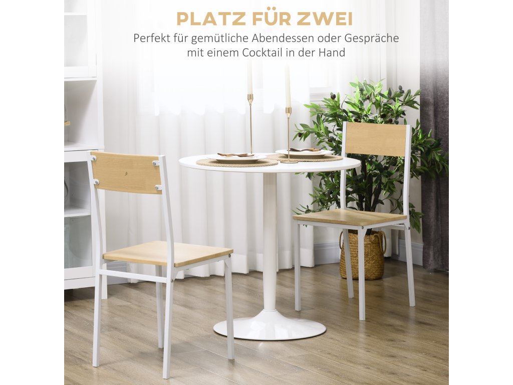 HOMCOM Jídelní stůl, Kulatý kuchyňský stůl, Moderní jídelní stůl pro 2 osoby, Barový stůl, Sloupový stůl s ocelovou nohou, Protiskluzová podnož, Konferenční stolek do obývacího pokoje, Ø80 x 75 cm, Bílá | Aosom
