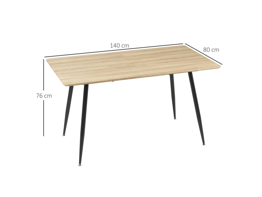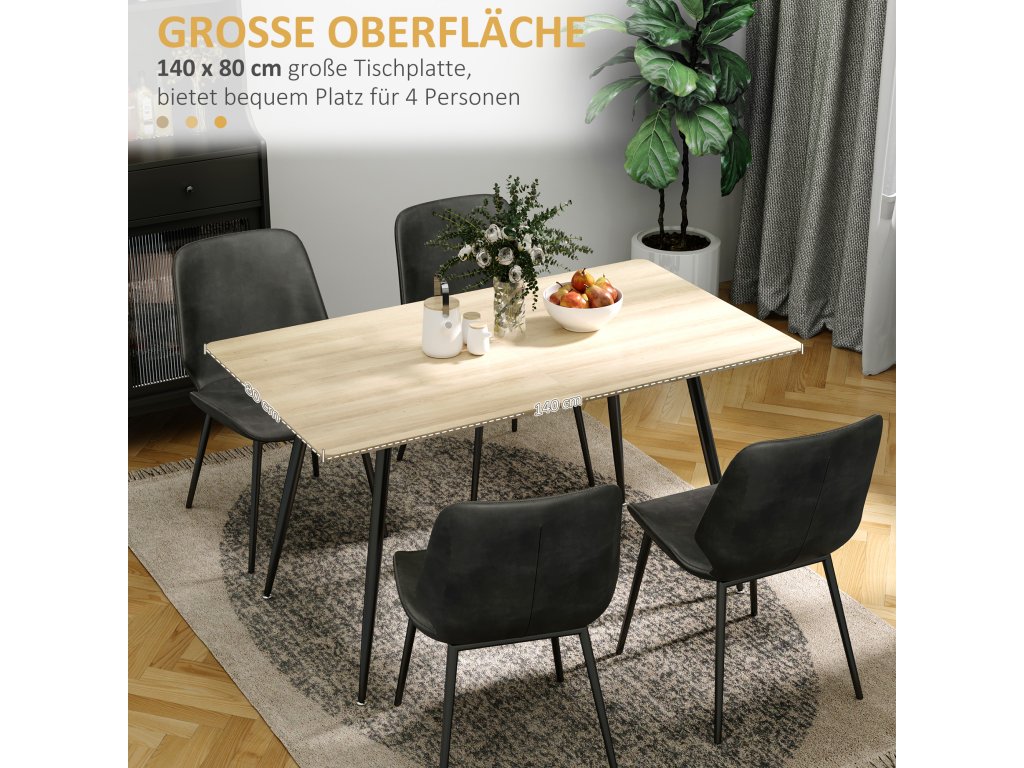 HOMCOM Jídelní stůl Moderní kuchyňský stůl pro 4 osoby, jídelní stůl v černé barvě se vzhledem dřeva, ocelové nohy, 140x80x76cm, příroda| Aosom