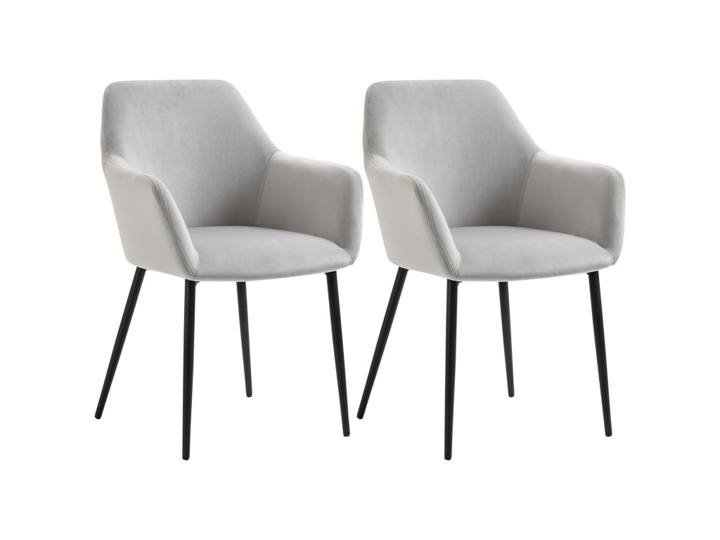 HOMCOM jídelní židle sada 2 kuchyňských židlí s opěradlem, čalouněná židle sametového vzhledu, ocelové nohy, světle šedá, 54 x 57 x 80 cm do obývacího pokoje | Aosom.de