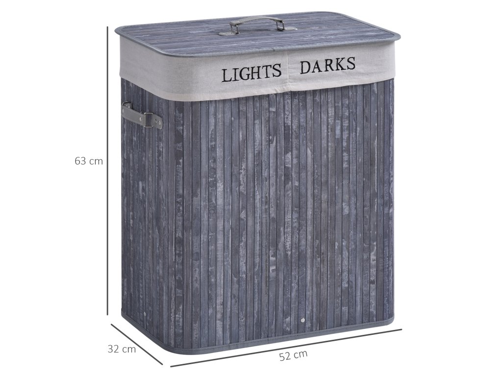 HOMCOM Koš na prádlo 100L Koš na prádlo s víkem, omyvatelný pytel na prádlo, plátno + bambus, šedý, 52x32x63cm| Aosom