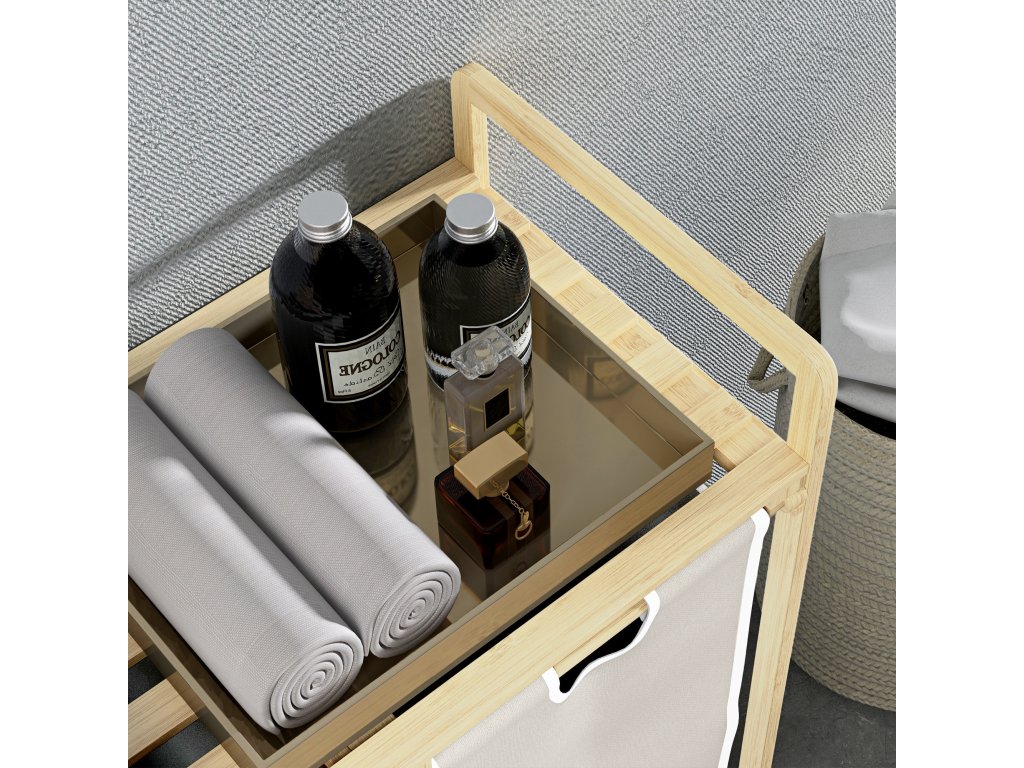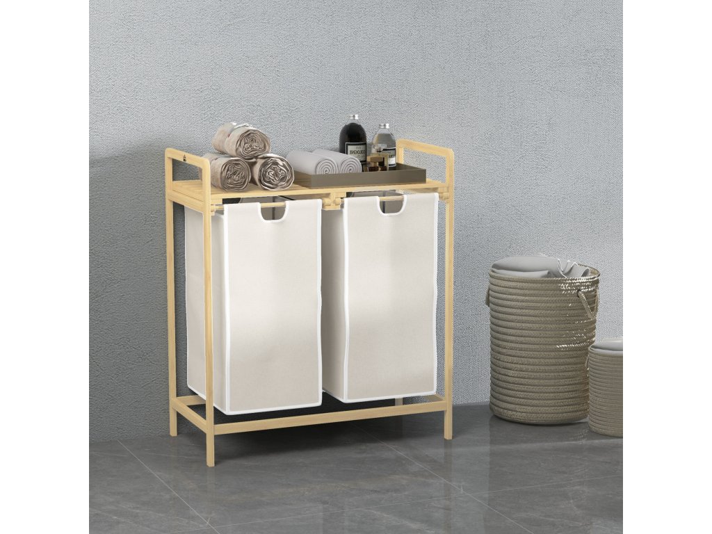 HOMCOM Koš na prádlo se 2 vyjímatelnými sáčky na prádlo Koš na prádlo do koupelny z bambusové smetany 63,5x33x73cm |