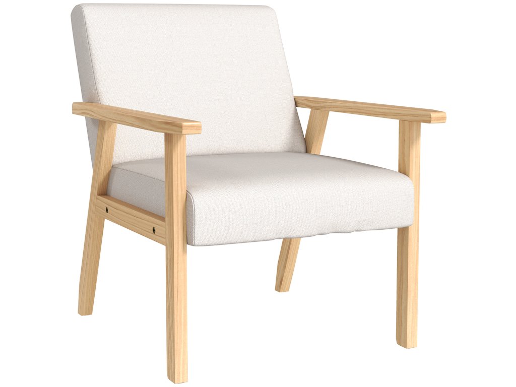 HOMCOM křeslo do obývacího pokoje s područkami, jídelní židle, polohovací křeslo ve vzhledu lnu, čalouněné křeslo do obývacího pokoje, ložnice, rám z masivního dřeva, 64 x 70 x 72 cm, krémově bílá barva