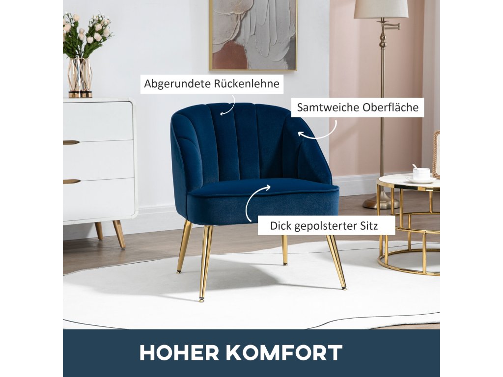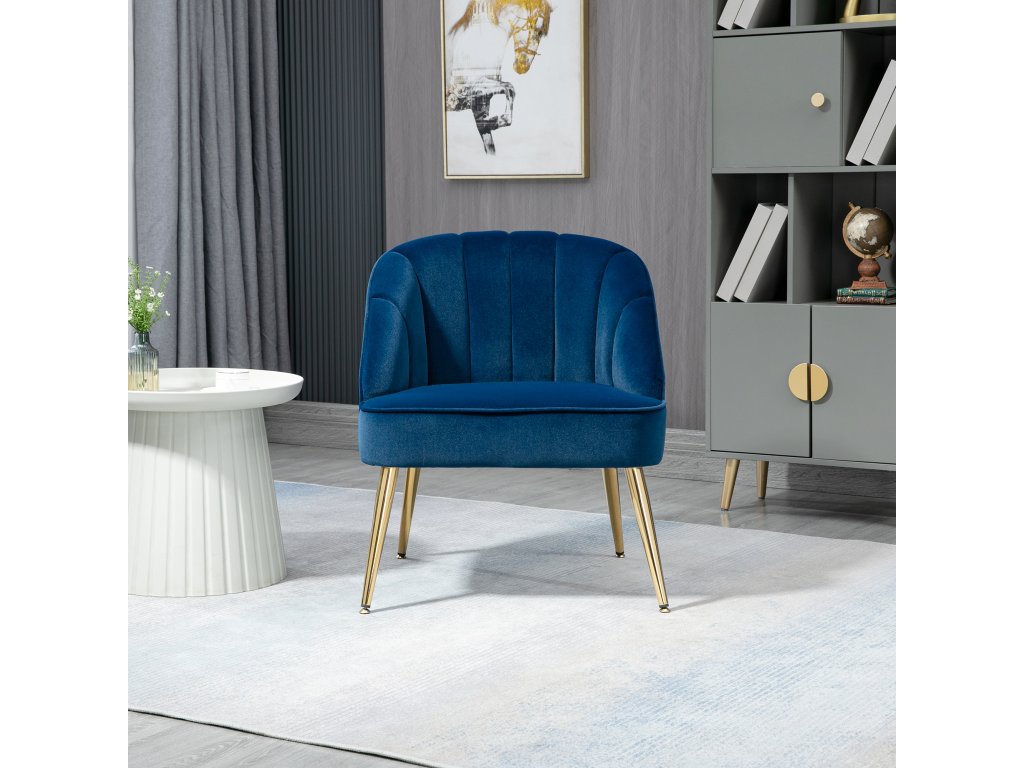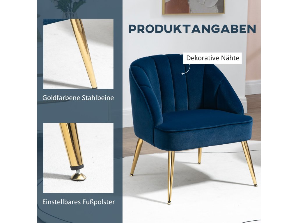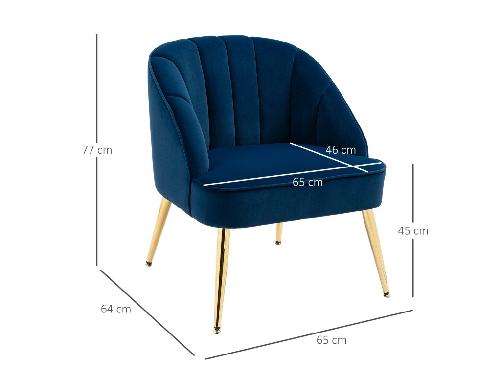 HOMCOM křeslo lounge chair čalouněné křeslo se sametovým vzhledem, polohovací křeslo, křeslo s ocelovými nohami, křeslo pro líčení, tmavě modré, 65 x 64 x 77 cm | Aosom