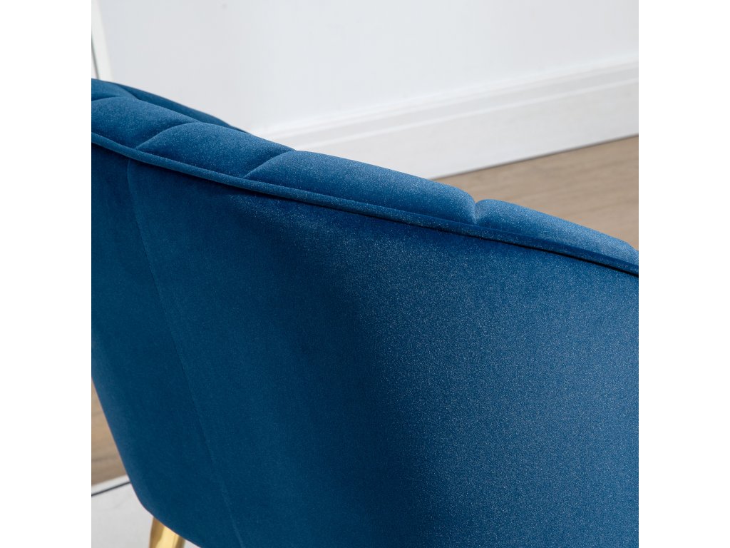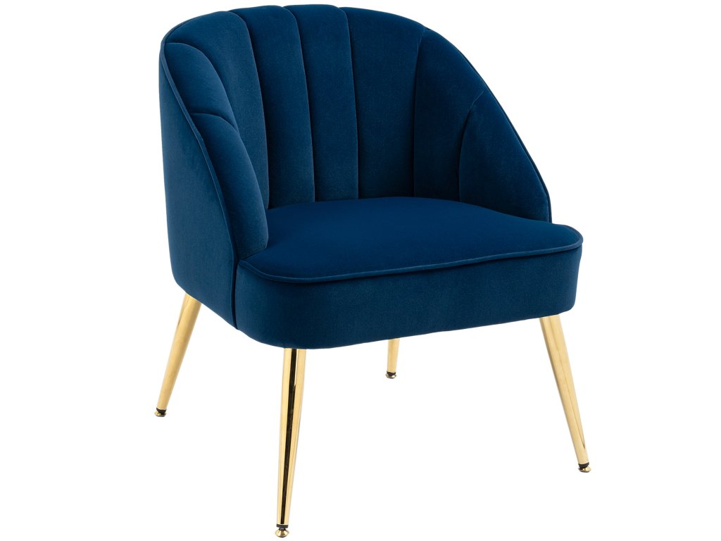 - Křeslo v retro designu: Tmavě modrý sametový vzhled a nohy ve zlaté barvě dodají eleganci každé místnosti.