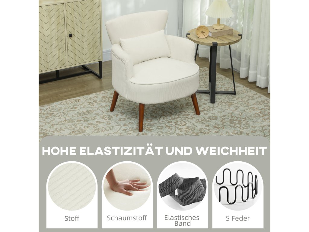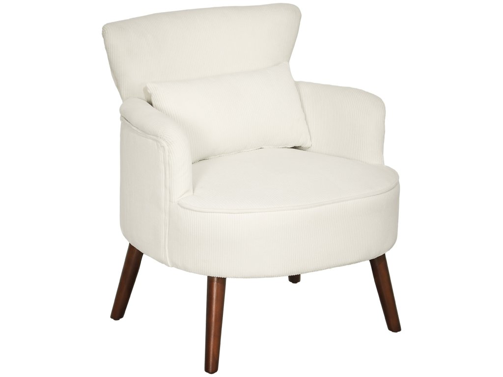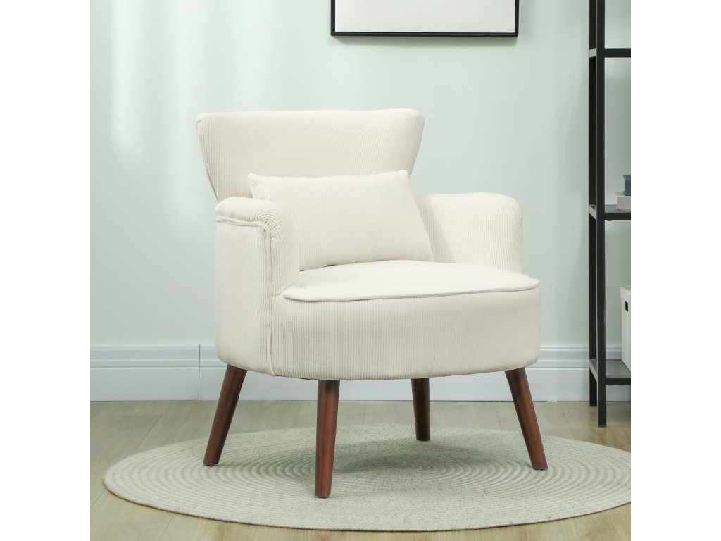 HOMCOM Křeslo s opěradlem, zaoblené područky, čalouněné lounge křeslo se vzhledem kabelu, dřevěné nohy, do ložnice, obývacího pokoje, do 120 kg, krémově bílá