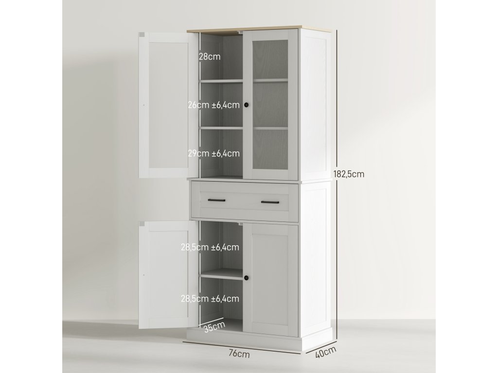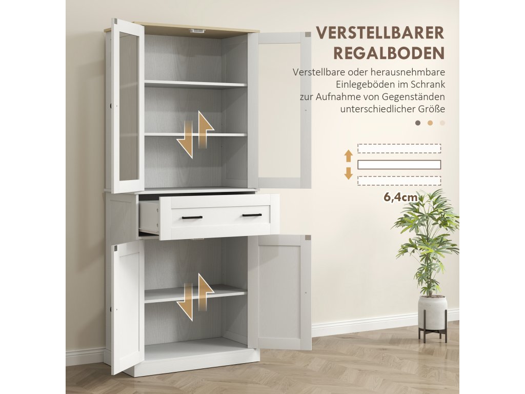 HOMCOM Kuchyňská skříňka, vysoká skříňka se zásuvkou, nastavitelné police, kuchyňský bufet s akrylovými dvířky, 2 skříňky do obývacího pokoje, jídelny, 76 x 40 x 182,5 cm, krémově bílá