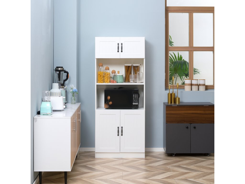 HOMCOM Kuchyňská skříňka Kuchyňský bufet vysoký se 2 policemi a 2 skříňkami s nastavitelnými policemi Police do mikrovlnné trouby Pás proti překlopení | Aosom