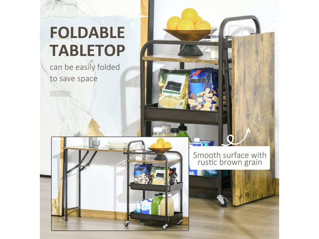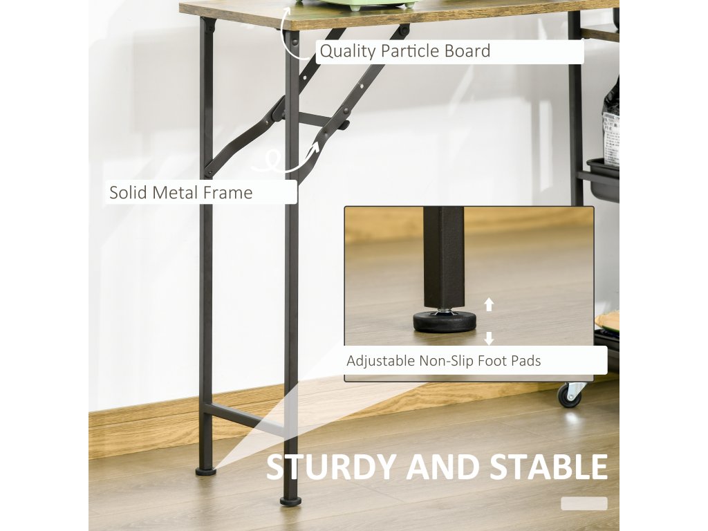 HOMCOM Kuchyňský servírovací vozík se sklopnou deskou stolu, 2 zásobníky, kolečky a nastavitelnými podložkami pod nohy pro kuchyň a jídelnu | Aosom.de