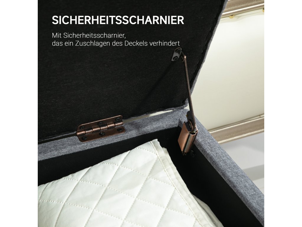 HOMCOM Lavice Čalouněná lavice s úložným prostorem Komoda Lavice do předsíně Ložnice Obývací pokoj Lněné polyesterové kaučukové dřevo Světle šedá 100 x 40 x 44 cm