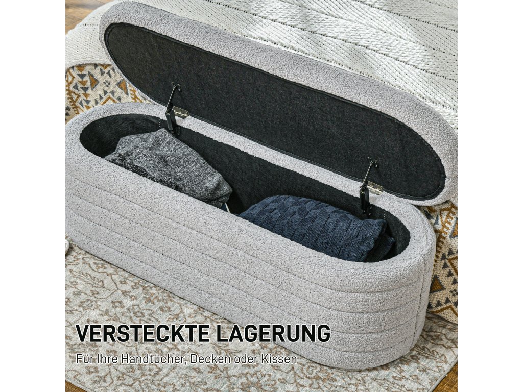 HOMCOM Lavice do ložnice, s úložným prostorem, dřevěné nohy, vysoká stabilita, plyšové rouno, nosnost 120 kg, 116 x 41 x 40,5 cm, světle šedá | Aosom
