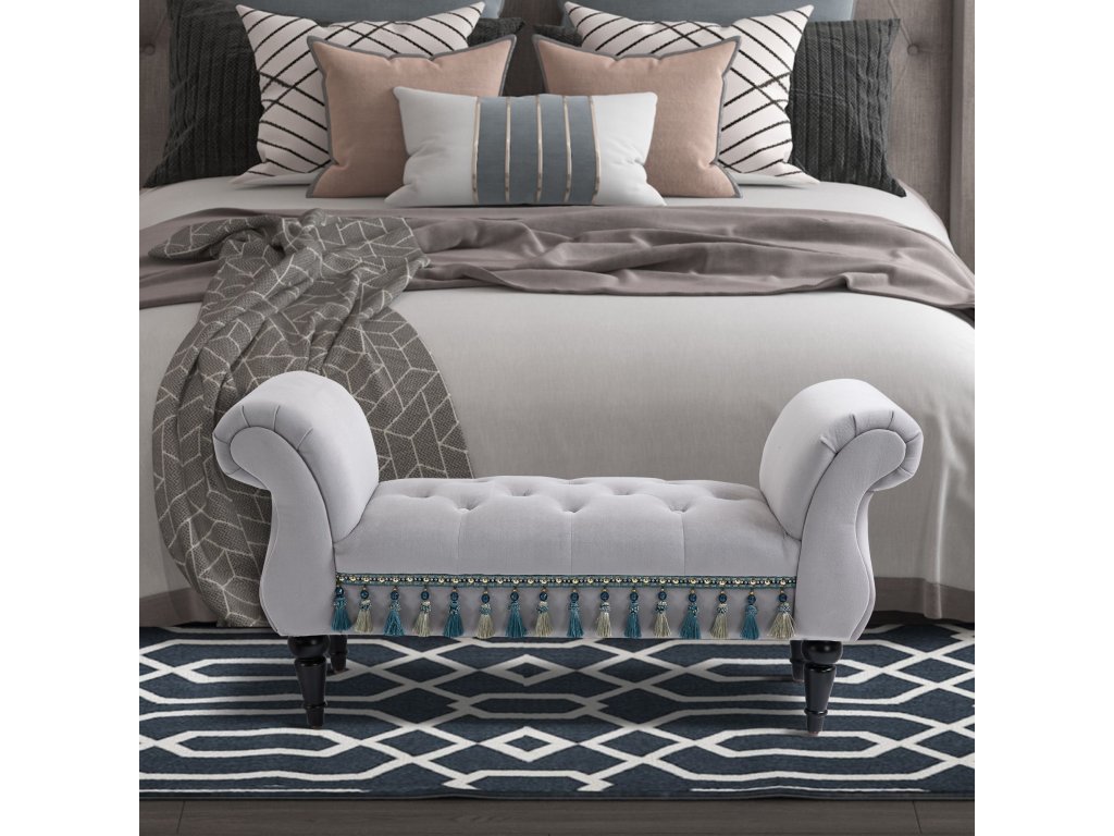 - ✔ Elegantní prošívání knoflíků a ozdobné střapce dodávají čalouněné lavici luxusní a sofistikovaný vzhled