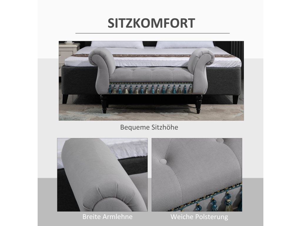 HOMCOM lavice elegantní čalouněná lavice postel taburet dřevěná lavice z polyesterové pěny šedá 117x40x58cm do obývacího pokoje a ložnice | Aosom.de