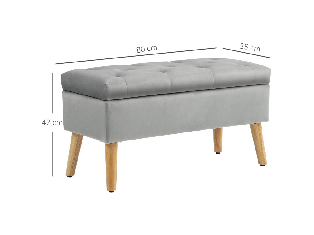 HOMCOM Lavice s úložným prostorem, čalouněná lavice s víkem, lavice na spaní se sametovým vzhledem, do předsíně ložnice obývacího pokoje, kaučukovník 102 x 35 x 43 cm Šedá barva