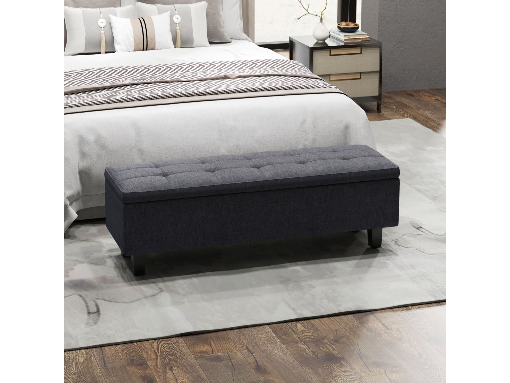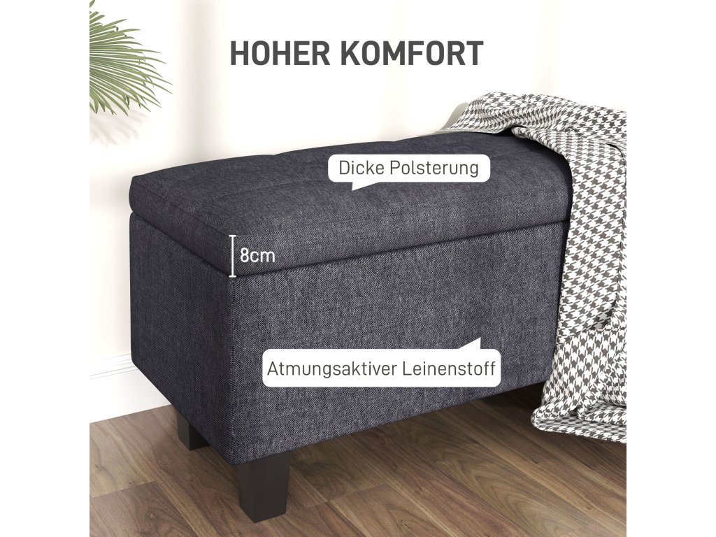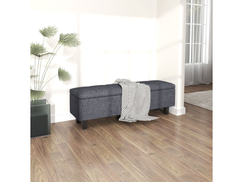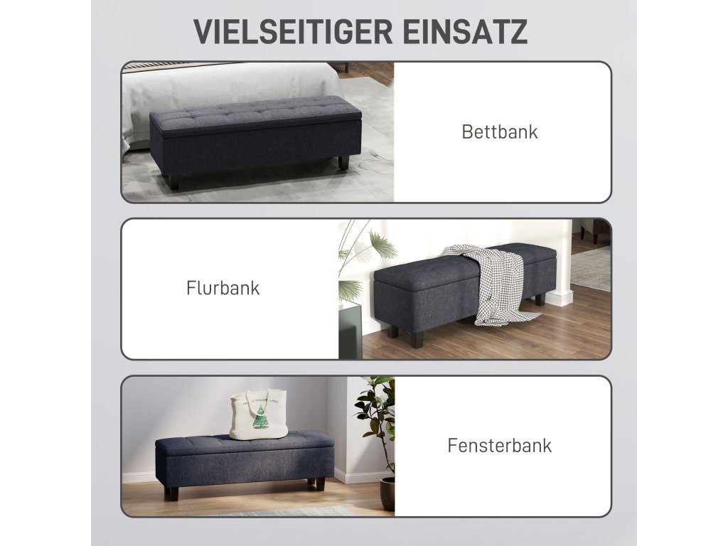 HOMCOM Lavice s úložným prostorem, čalouněná lavice se vzhledem lnu, dřevěné nohy, moderní lavice do předsíně, ložnice, obývacího pokoje, 138 x 40 x 45 cm, tmavě šedá barva