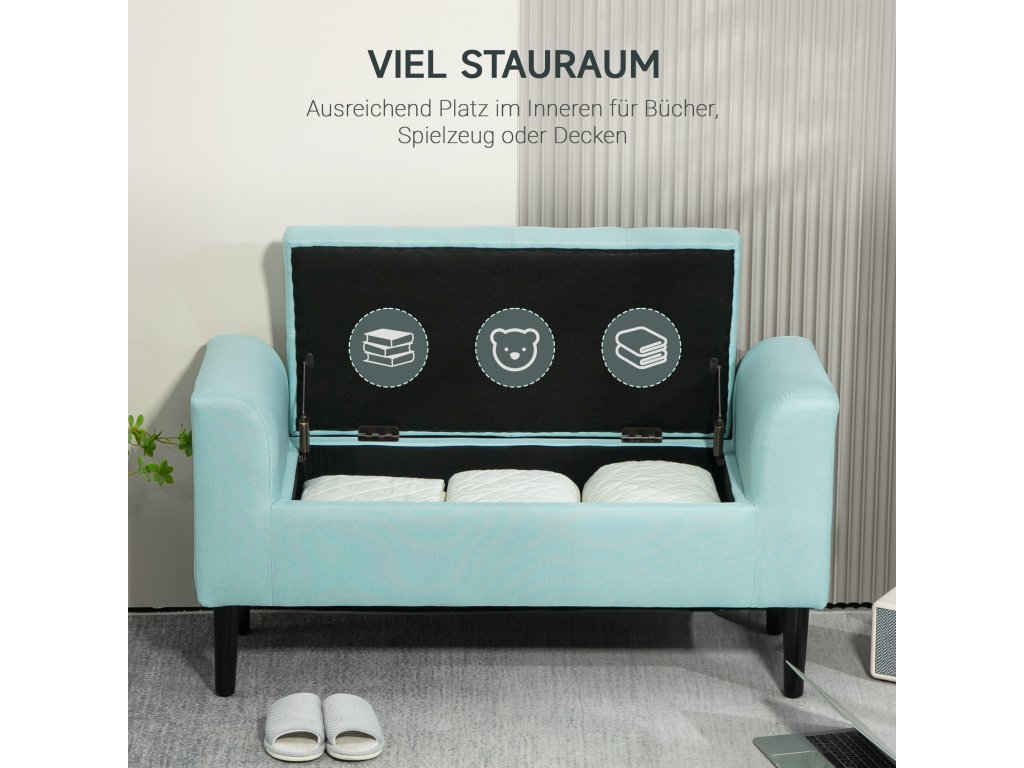 HOMCOM Lavice s úložným prostorem, čalouněná lavice se vzhledem lnu, taburet s nosností do 130 kg, úložný box, do obývacího pokoje ložnice předsíně, 116 x 44 x 58 cm Zelená