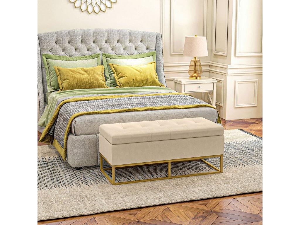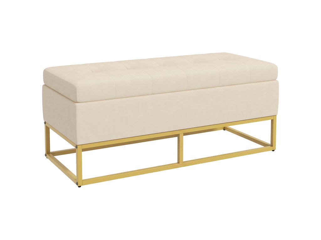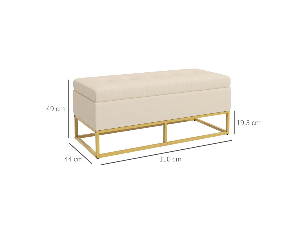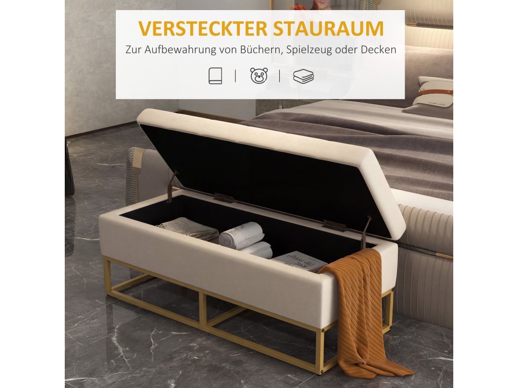 HOMCOM Lavice s úložným prostorem Čalouněná lavice s výklopným víkem v béžovém sametovém vzhledu Lavice s ocelovými nohami 110x44x49 cm do předsíně obývacího pokoje | Aosom.de