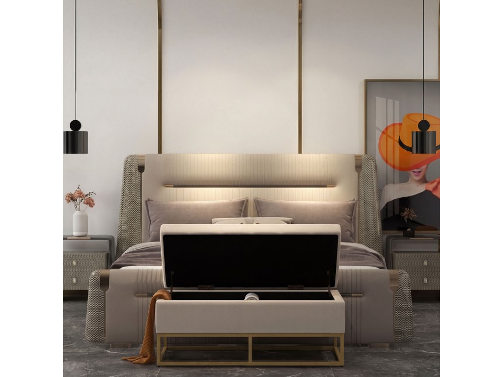 - Skrytý úložný prostor: Pod odklápěcím víkem je dostatek úložného prostoru na polštáře, deky a další předměty.