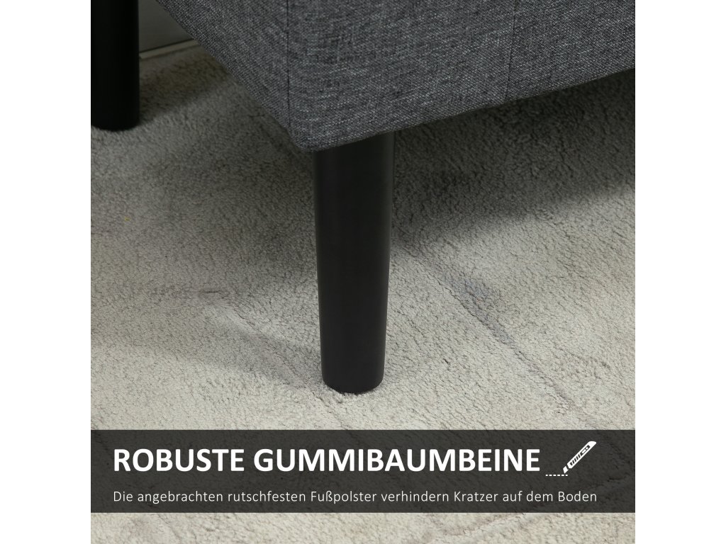 - SOLIDNÍ KONSTRUKCE: Polyesterová tkanina na dotek lnu zajišťuje snadné čištění, zatímco nohy z kaučukového dřeva přispívají k jeho stabilitě a odolnosti. Připojené protiskluzové podnožky mohou zabránit poškrábání podlahy.