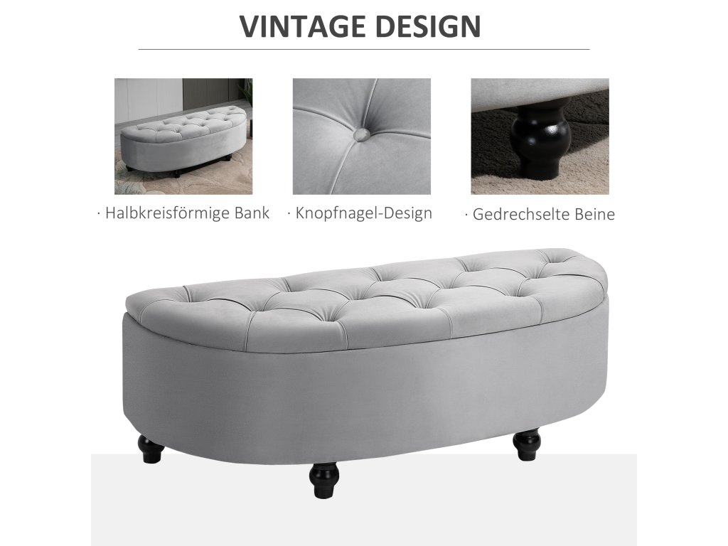 HOMCOM Lavice Úložný box Stolička Úložný box Podnožka Velvet-Touch Rubberwood Grey Ložnice | Aosom