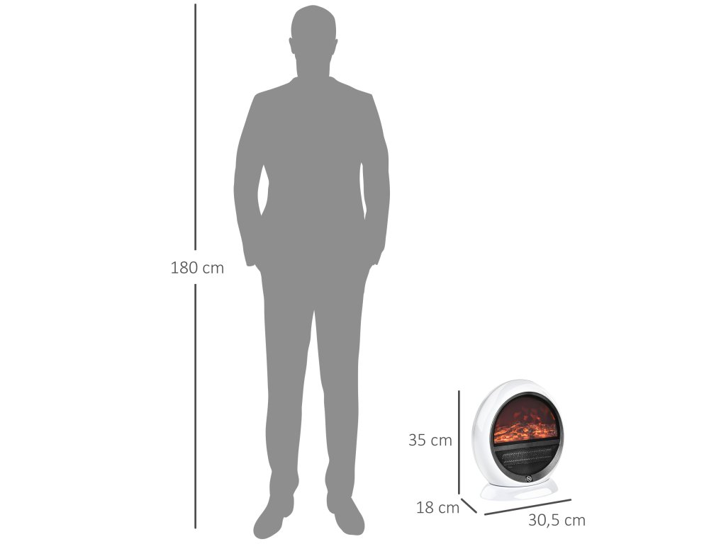 HOMCOM LED elektrický krb Mini stolní krb 1500W s efektem plamene, stabilní, ABS plast, bílý, kompaktní rozměry 30,5 x 18 x 35 cm |