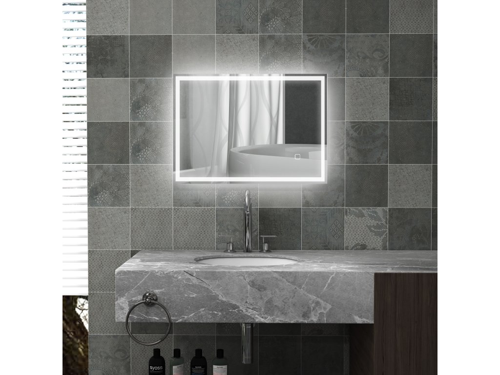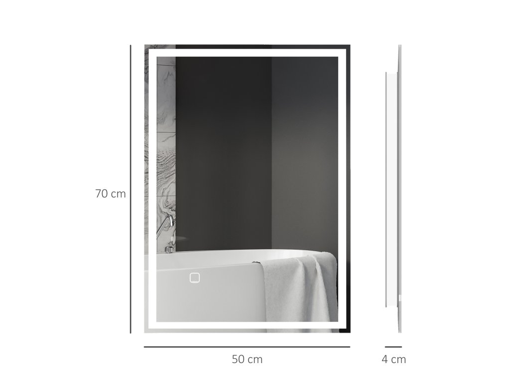 HOMCOM LED koupelnové zrcadlo 80x60cm, nástěnné, bez mlhy, s dotykovým spínačem, IP44 pro moderní koupelny | Aosom.de
