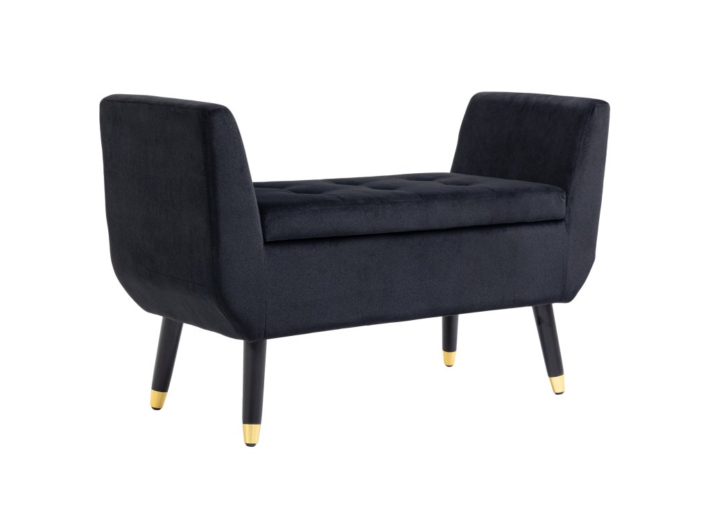 HOMCOM Luxusní čalouněná lavice s úložným prostorem a područkami, sametový polyester, kaučukové dřevo, černá, 107x42x65cm do obývacího pokoje a předsíně | Aosom.de