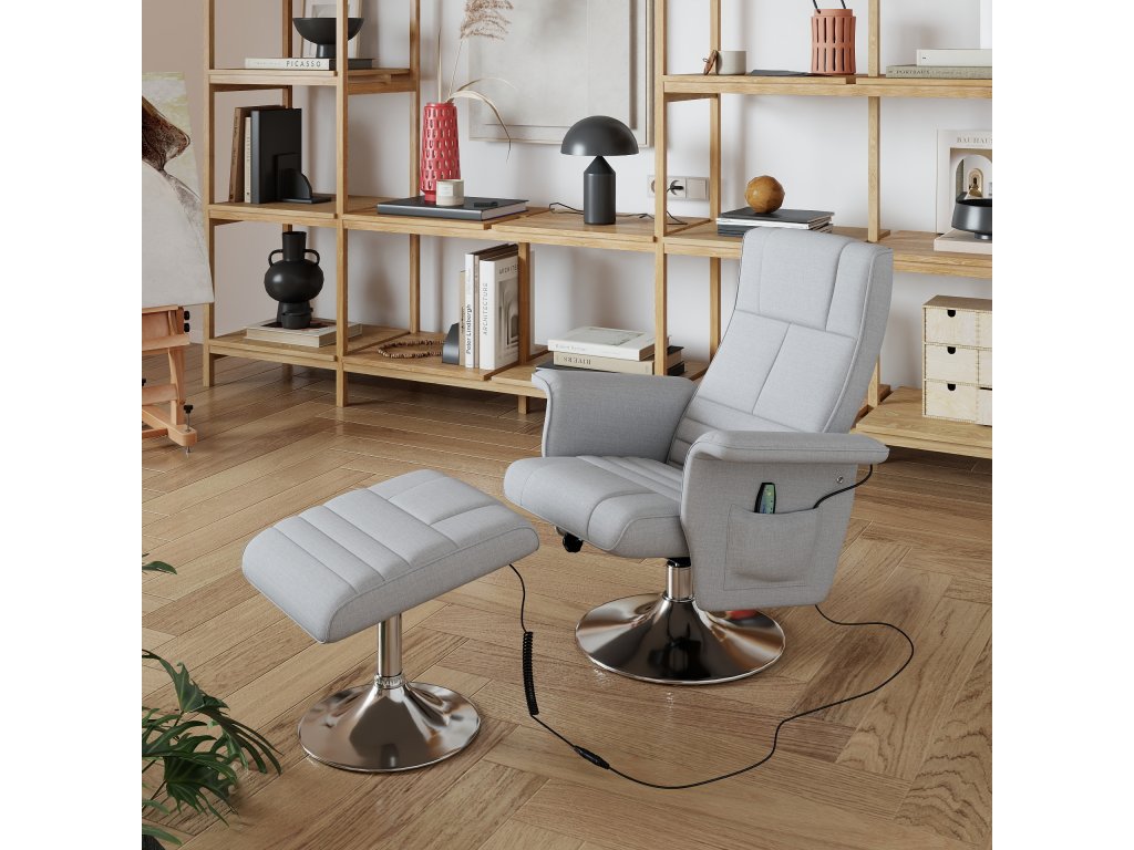 HOMCOM Masážní křeslo s podnožkou Elektrické TV křeslo s funkcí polohování, dálkové ovládání, vzhled lnu, ocel, světle šedá| Aosom