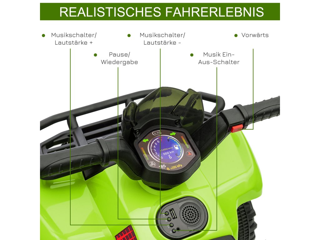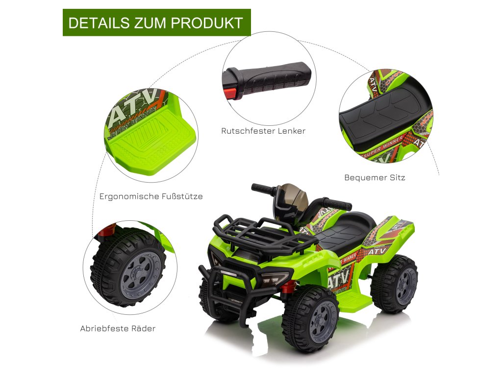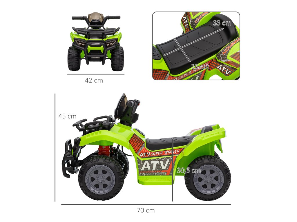 HOMCOM Mini elektrická čtyřkolka dětská elektrická čtyřkolka s předním světlem dětské vozidlo dětská motorka elektrická čtyřkolka pro děti 18-36 měsíců zelená | Aosom