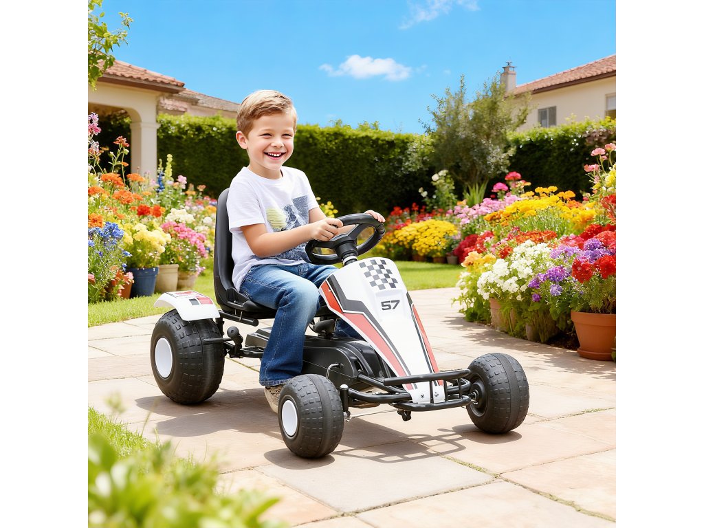 HOMCOM Motokára pro děti šlapací auto s pedály a brzdami 104x66x57cm z oceli pro děti od 3 do 8 let v bílé barvě | Aosom.de