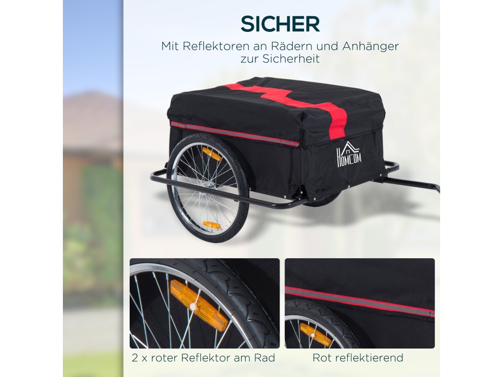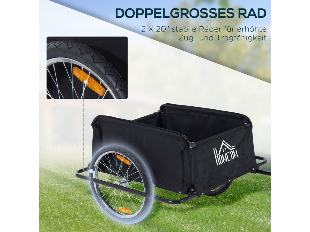 Na kole toho můžete převézt hodně. S nákladním přívěsem HOMCOM je to dokonce velmi snadné. Univerzální spojka přívěsu se hodí téměř na každé kolo a lze ji rychle připojit i odpojit. Robustní ocelový rám umožňuje zatížení až 40 kg. Díky 20palcovým pneumatikám se přívěs snadno táhne i plně naložený a odrazky na ráfku zajišťují lepší viditelnost.