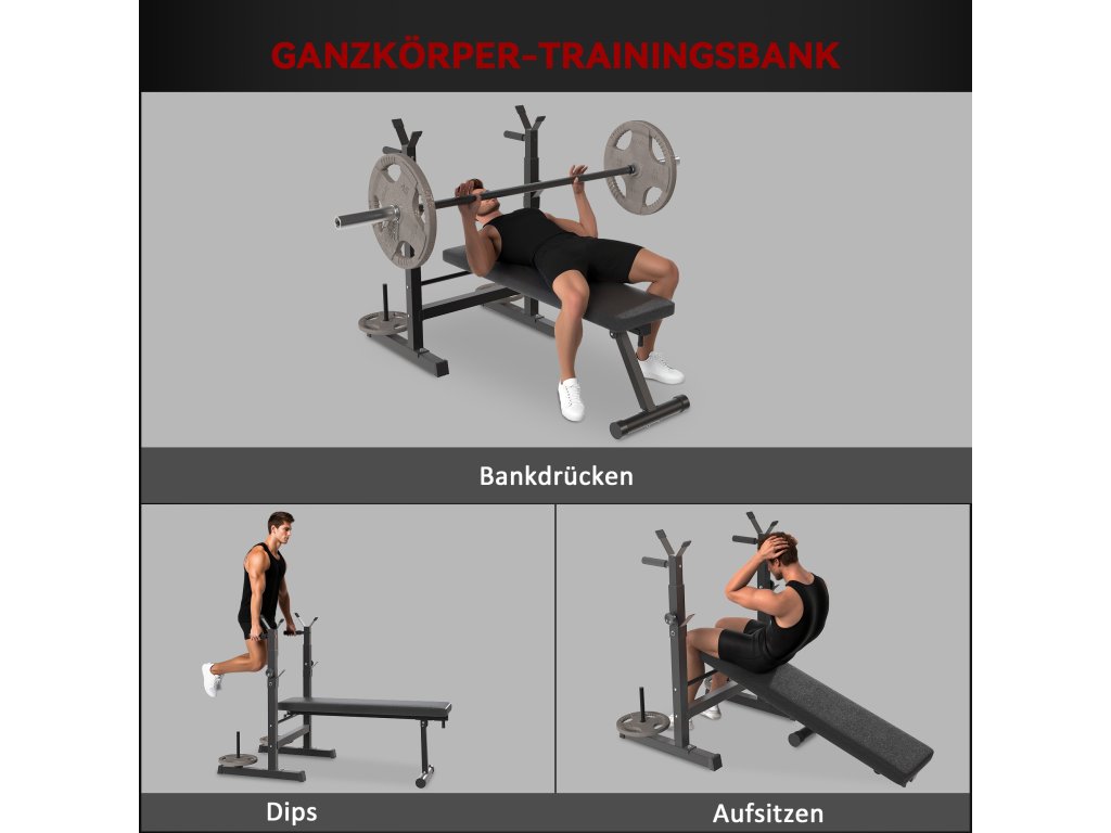 S posilovací lavicí HOMCOM nebyl silový trénink nikdy tak snadný. Perfektní pro trénink horní části těla: bench press, kliky, dipy, veslování a další. Posilovací lavice nabízí osm poloh pro optimální trénink. Polstrovaná lavice zajišťuje maximální pohodlí. Po tréninku lze posilovací lavici složit a ušetřit tak místo. Zůstaňte fit a silní z domova - aniž byste museli chodit do posilovny.