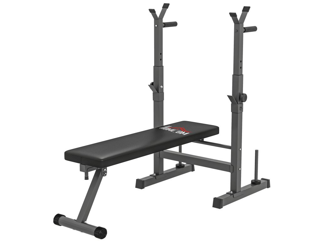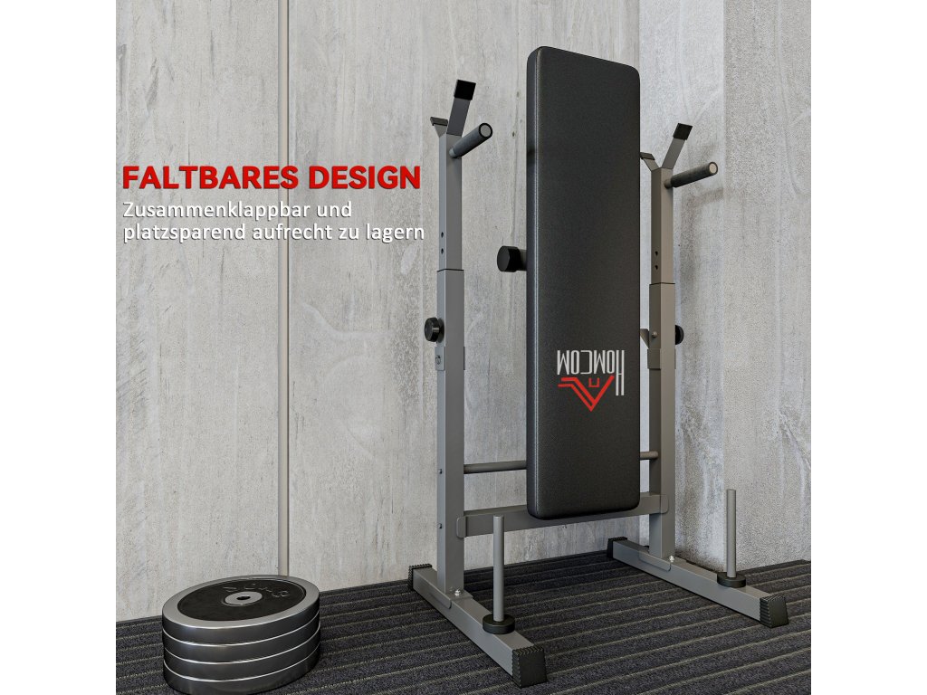 HOMCOM Nastavitelná skládací posilovací lavice se stojanem na činky Fitness lavice pro domácnost z oceli v černé a šedé barvě | Aosom.de