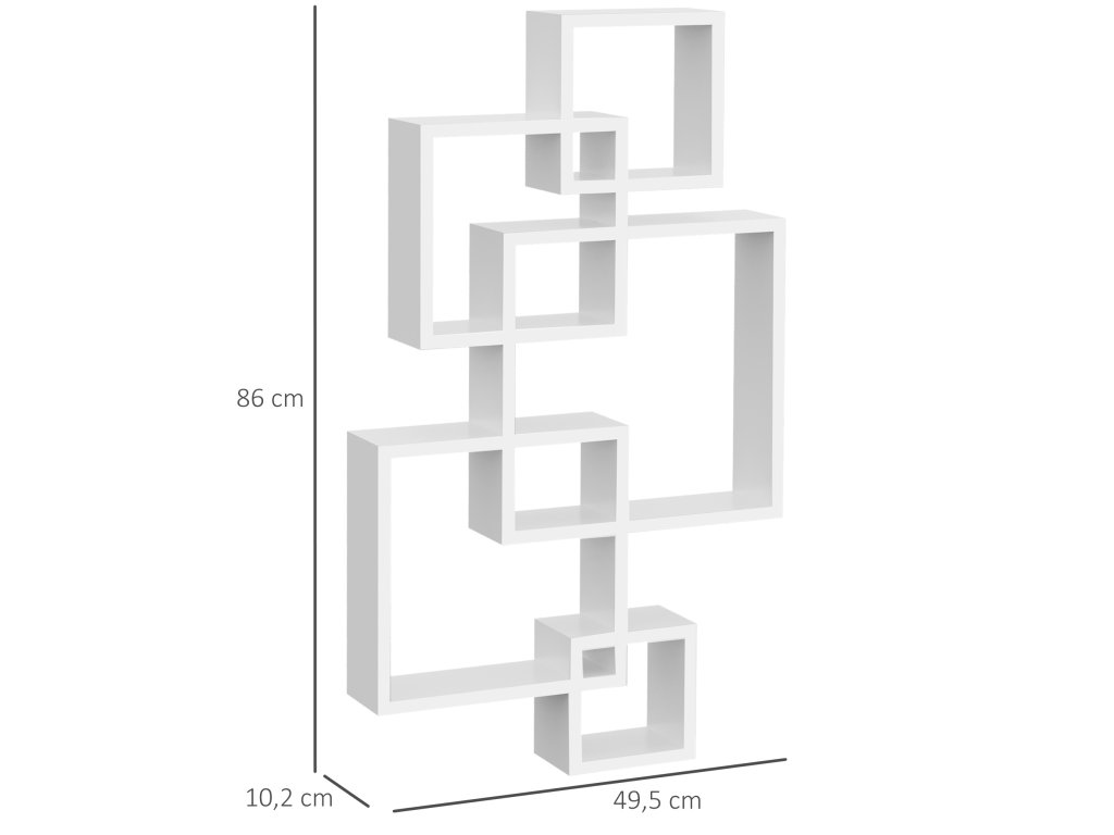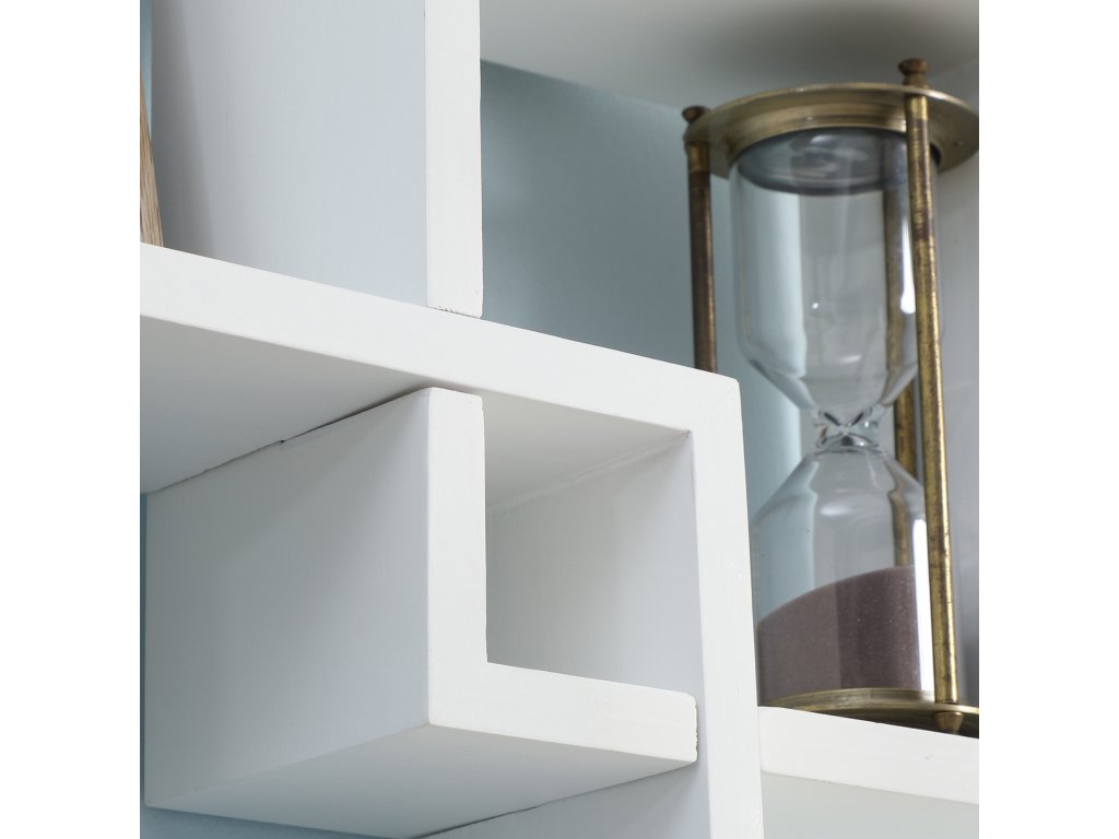 - Krásná dekorace: Pět do sebe zapadajících obdélníků tvoří devět různě velkých přihrádek, ve kterých můžete vystavit rámečky na fotografie, vázy, knihy a mnoho dalšího.