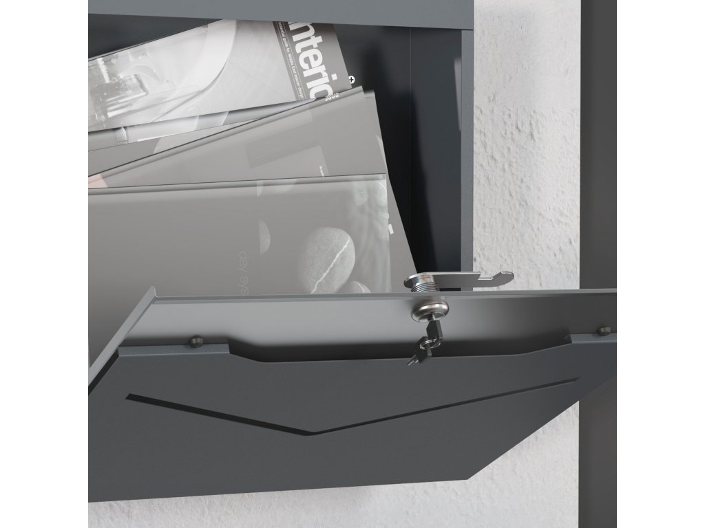 - Promyšlené detaily: Poštovní schránka má průhledy, takže snadno uvidíte, co je uvnitř - ať už je to pošta, účty nebo časopisy. Víko je opatřeno podložkami pohlcujícími zvuk, které snižují hluk při zavírání. K dispozici je také držák na noviny, do kterého můžete ukládat časopisy a noviny