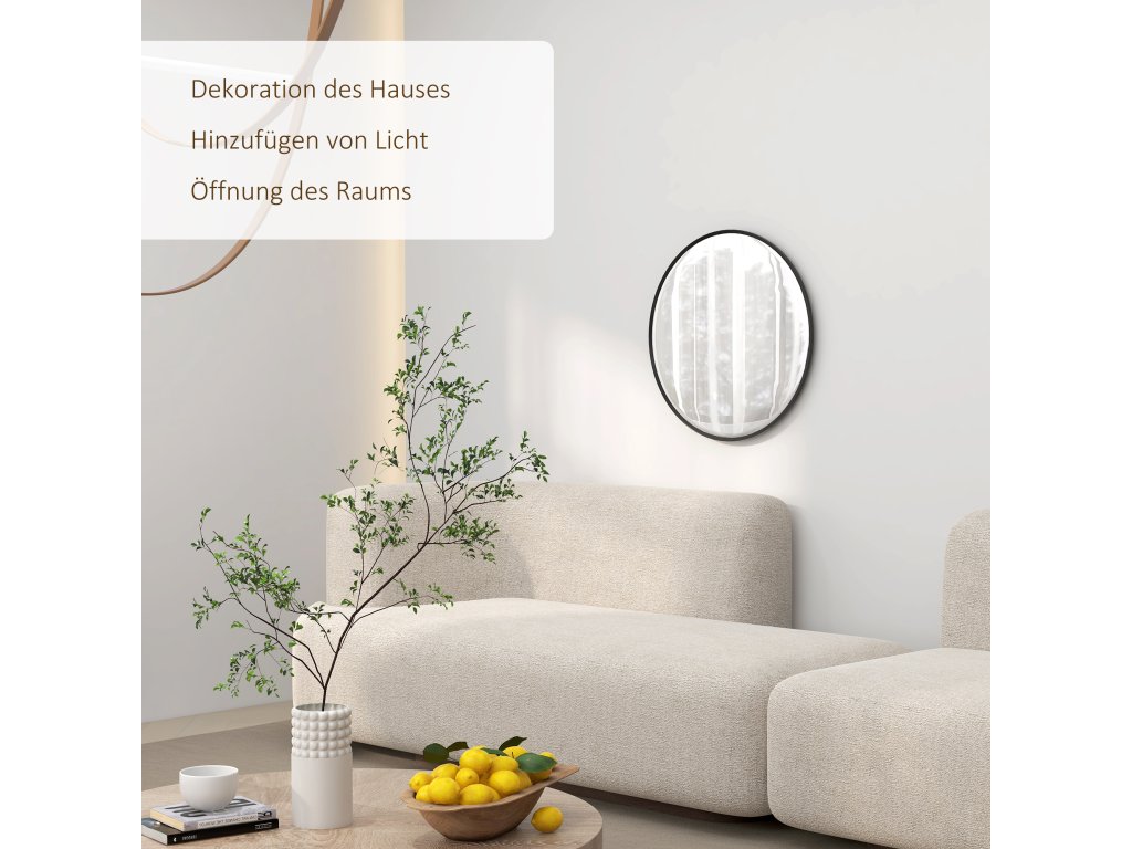 HOMCOM nástěnné zrcadlo 60 x 60 cm kulaté koupelnové zrcadlo s hliníkovým rámem, dekorativní zrcadlo do koupelny obývacího pokoje předsíně ložnice černé | Aosom.de